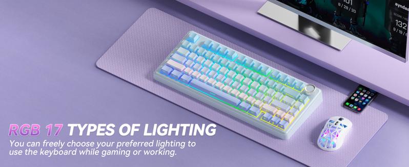 Ideal for those who prefer a compact layout. The 75% mechanical keyboard combines functionality and style, making it a versatile choice for PC and Mac users.