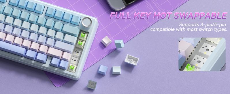 ✨ Hot-swappable keys ✨ Enjoy flexibility with interchangeable keys. This feature allows you to customize your keyboard setup effortlessly.