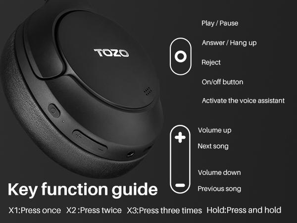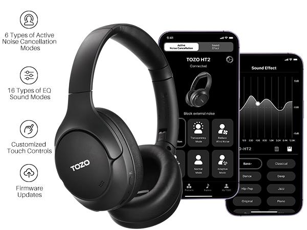 TOZO HT2 Hybrid Active Noise Cancelling Headphones, Wireless over Ear Bluetooth Headphones